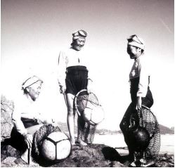Les plongeuses ramassent des fruits de mer comme : les ormeaux, les concombres de mer, les conches, les poulpes, les oursins, des algues brunes, de coquilles supérieures, des huitres, des limaces de mer, etc. , le tout avec un minimum d’équipement !